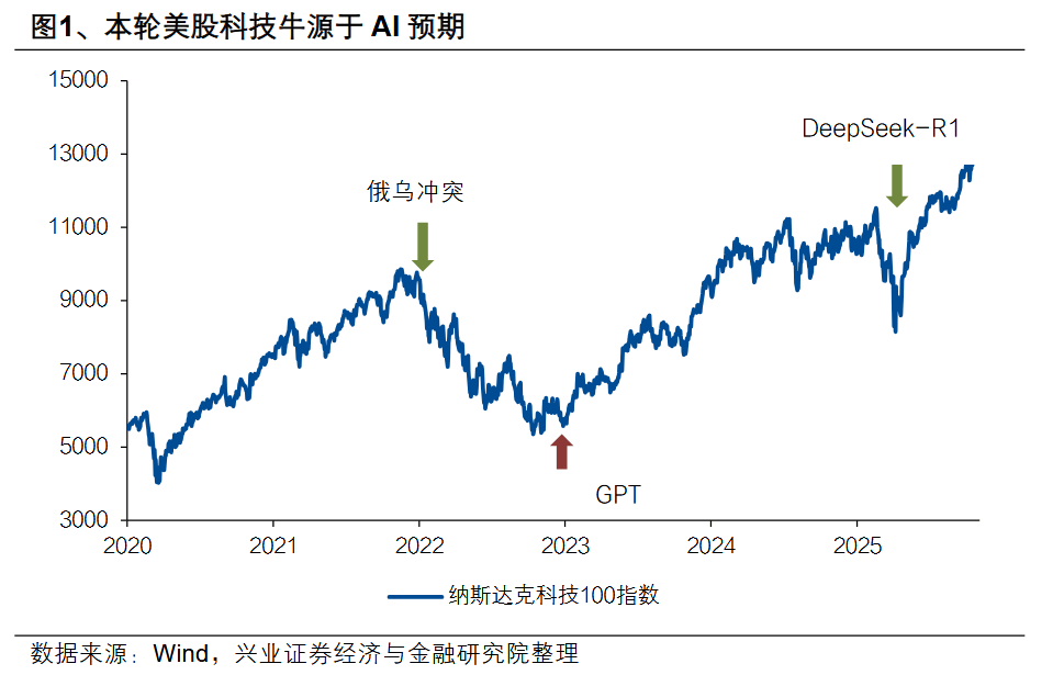 基本面与流动性两大“支柱”出现动摇,导致了这次海外市场的动荡。本轮美股牛市有两大核心“支柱”:一是自2022年末ChatGPT 3.5发布之后,市场对美国在AI时代拥有“技术霸权”的预期升温;二是今年年中以来,特朗普施压美联储宽松,导致市场对流动性宽松预期强化。而过去两天海外市场调整的直接诱因,是这两大核心驱动均遭遇阶段性逆风:一是美联储官员近期释放言论,叠加美国政府停摆引发的短期流动性紧张,导致市场对宽松周期的预期出现修正;二是市场对AI巨头高资本开支的盈利兑现能力担忧升温,也压制了科技板块风险偏好。