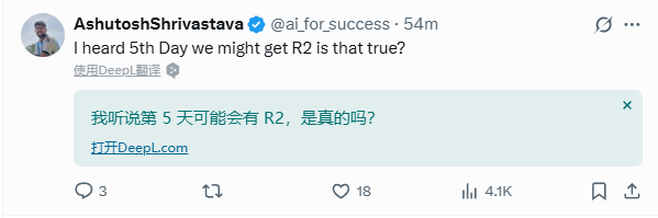 虽然如此,却挡不住网友对R2的热情。一位网友更大胆猜测,第5天就有R2了,是真的吗?