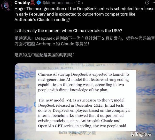 如果V4真能在硬件受限的条件下,实现对Claude编程能力的超越,那绝对是极具象征意义的里程碑。