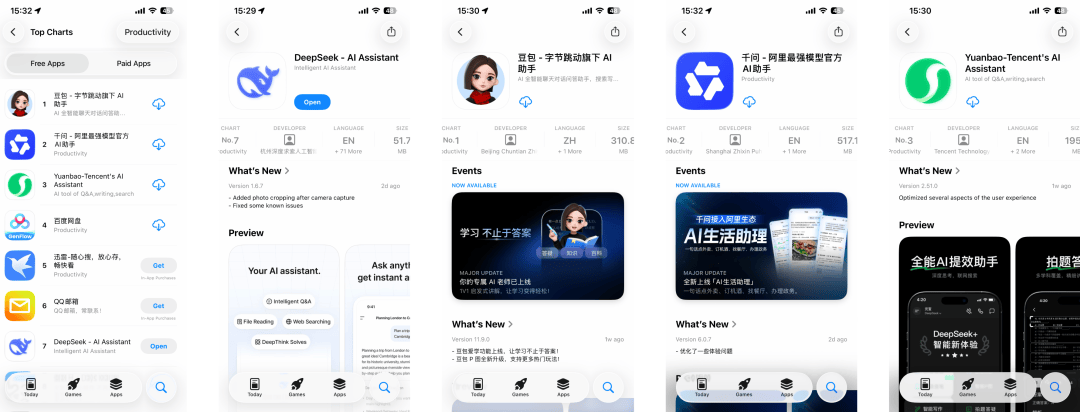 免费应用下载榜的前三名,已经被国产互联网大厂的「御三家」包揽,而曾经霸榜的 DeepSeek,已经悄悄来到了第七名。