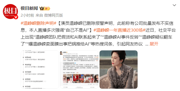 声明中提到,网络上出现的“温峥嵘团队把假货和AI联系起来了”、“温峥嵘AI事件反转”等热搜词条均由该公司统一运营和管理。